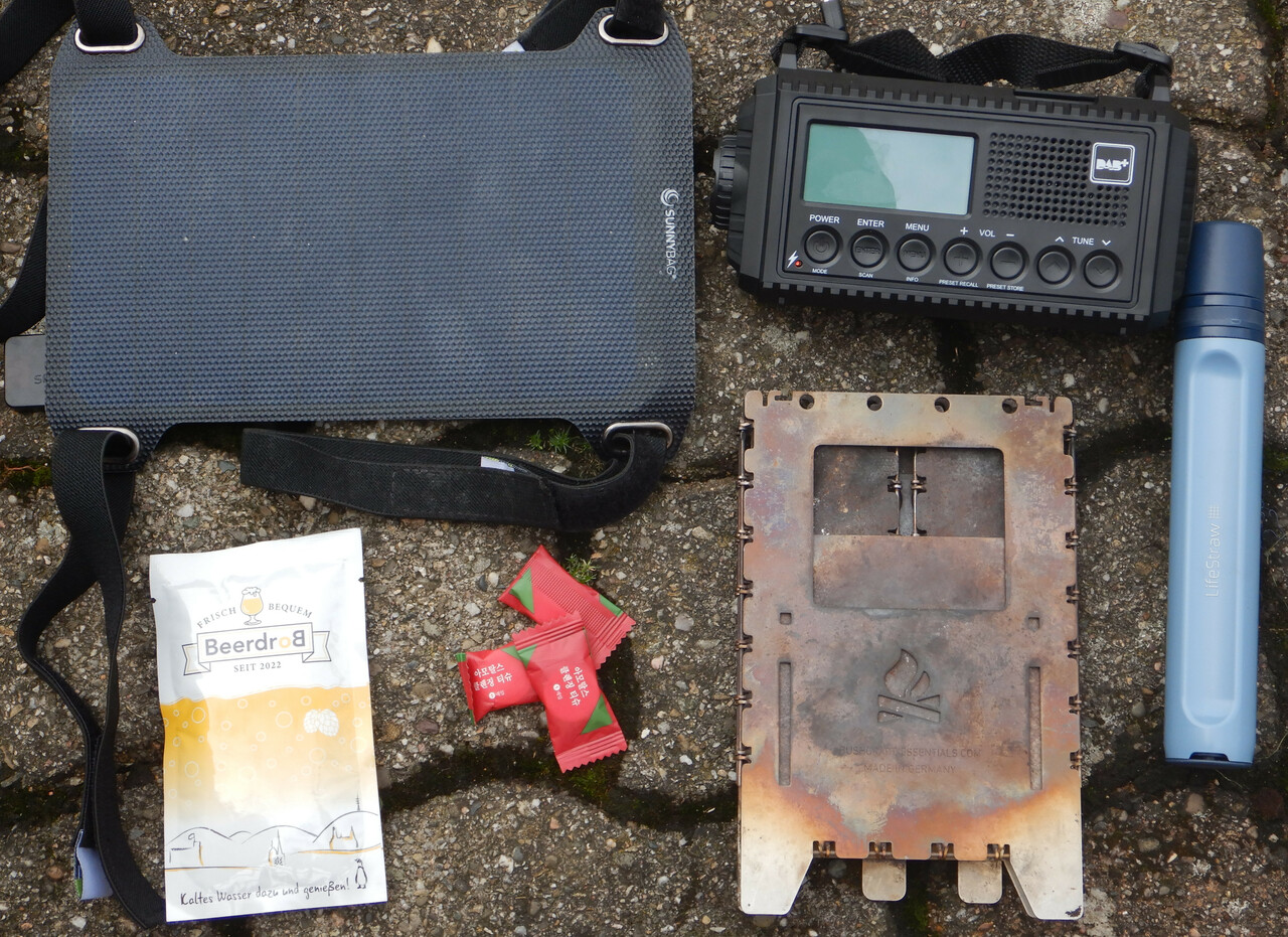 Dann habe ich mir als naechstes die Frage gestellt : was braucht man denn an kompakter Ausruestung um z.B. beim Bikepacking unabhaengig zu sein ? Ich bin zusaetzlich zur normalen Zeltausruestung auf folgendes gekommen :