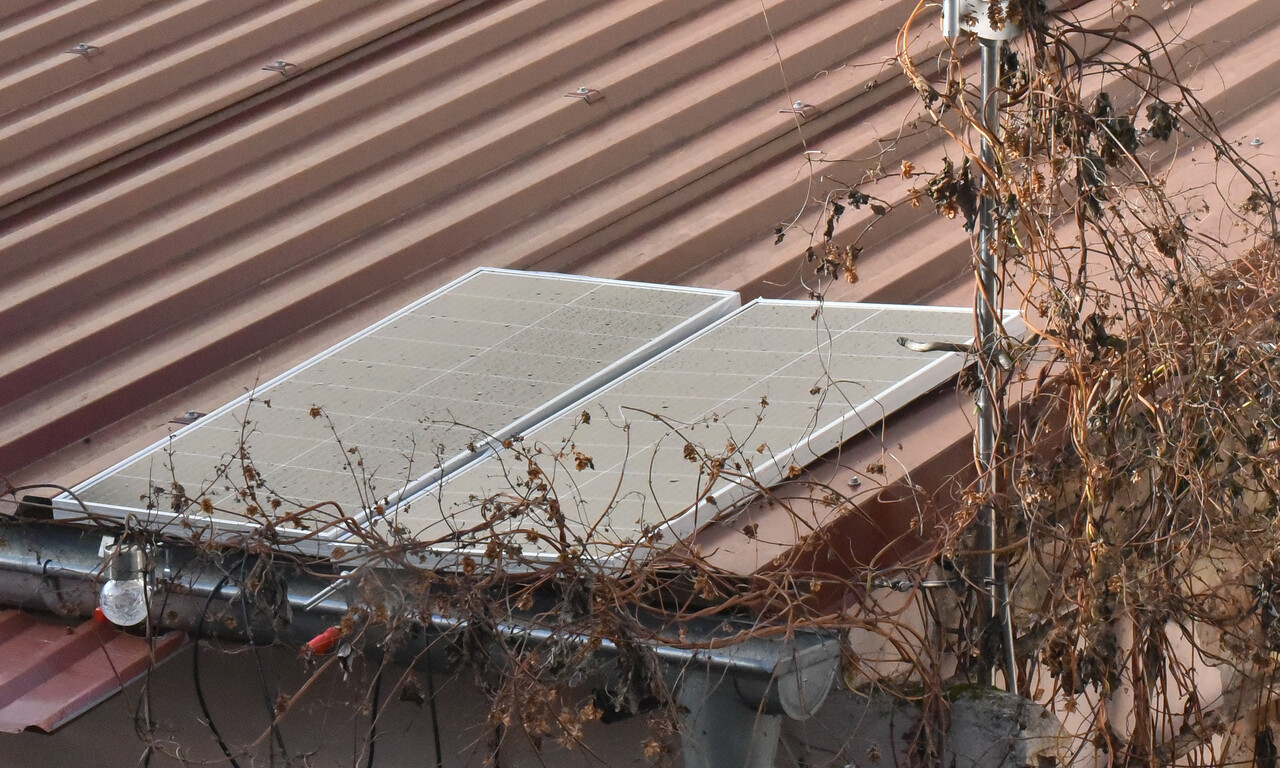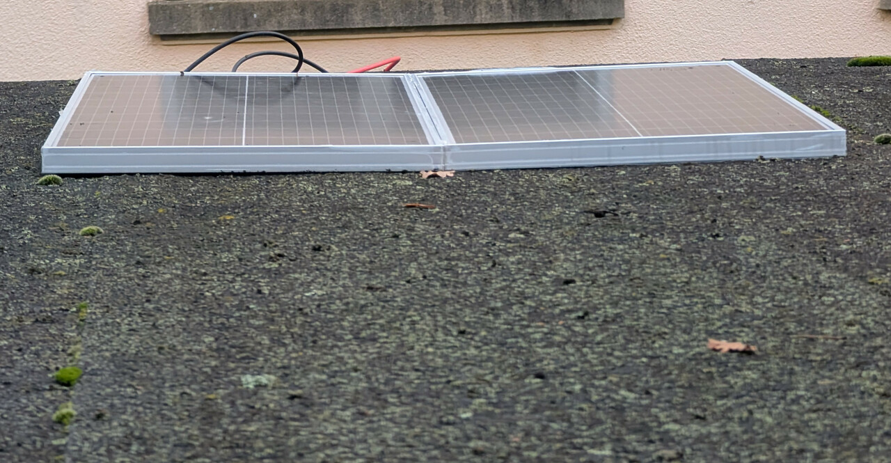 Damit liefert das Setup bei an einem bewoelkten Tag 10 mal mehr Energie, als die Alarmanlage benoetigt - das sollte also auch im Winter fuer die Erhaltungsladung reichen.