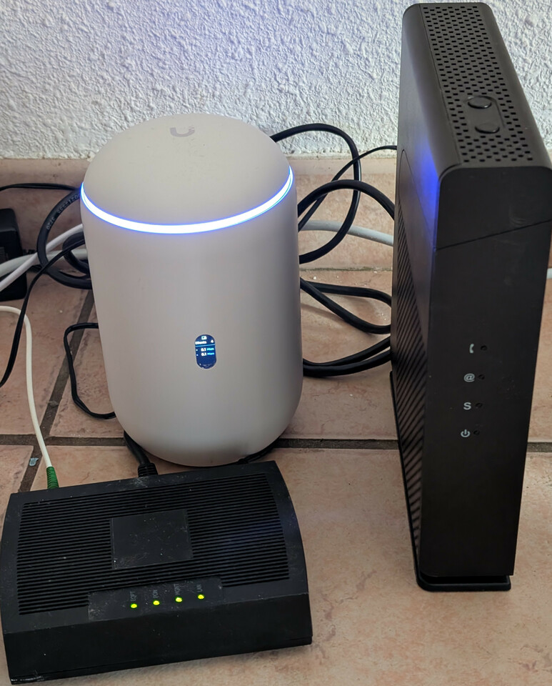 Zu Hause habe ich schon seit ein paar Jahren Unifi Geraete fuer das Netzwerk - dabei gefaellt mir die zentrale Management Software gut und ich finde die Geraete hochwertig. Router, Switches und AccessPoints laufen schon seit Jahren problemlos. Fuer unser Ferienhaus in Gruissan habe ich einen 1 GB Glasfaseranschluss von SFR gebucht fuer knapp 20 Euro im Monat. SFR liefert einen Router mit - ueber das WLAN hatte ich bei Videokonferenzen aber immer wieder Aussetzer, auch wenn ich direkt neben dem Router sass. Ich bin eh kein Fan von Geraeten, die vom Provider gemanagt werden, also habe ich mir einen Unifi Dream Router 7 ausgesucht :